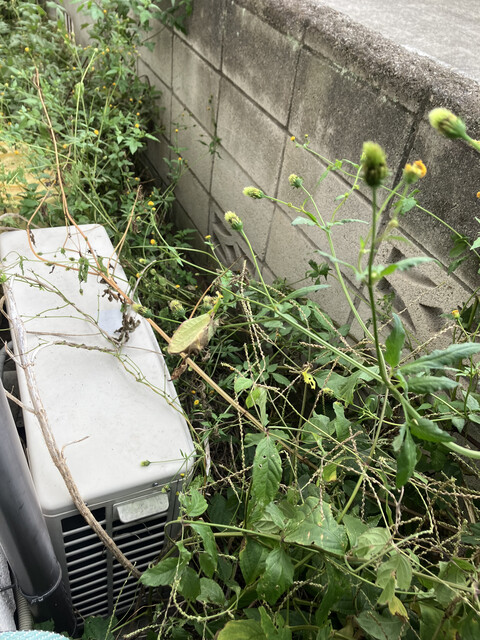 エアコンの室外機の周りに草が生い茂っておりそれを綺麗に片づけました。